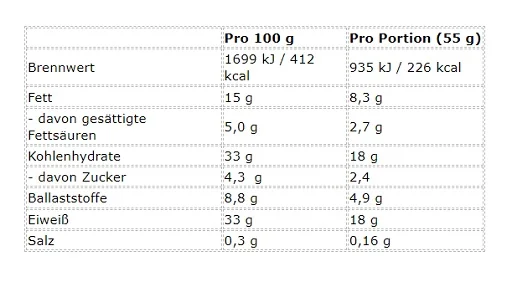 Proteinmischung (38%) [MILCHproteine, Sojaprotein-Nuggets (isoliertes SOJA-Protein, Kakaopulver, Tapiokastärke), hydrolysiertes Rinderkollagen, hydrolysiertes WEIZEN-Protein], Feuchthaltemittel (pflanzliches Glycerin), Isomalto-Oligosaccharide, Überzug mit Milchschokoladengeschmack (10%) [Süßstoffe (Maltit, Sucralose), Palmöl, Palmkern, Molkenpulver (MILCH), Mehl (WEIZENmehl, Kalziumkarbonat, Eisen, Niacin, Thiamin), Kakaopulver, Emulgatoren (SOYA-Lecithin, Polyglycerin-Polyricinoleat), natürliches Aroma], zuckerarme Karamellgeschmacksschicht (8%) [Oligofruktose, Feuchthaltemittel (pflanzliches Glycerin), Sheaöl, Wasser, Geliermittel (Pektin), Farbstoff (Karamell), Emulgatoren (Mono- und Diglyceride von Fettsäuren, Rapslecithin), Salz, natürliche Aromen)], Rapsöl, Süßstoff (Maltitol), Maisfasern, Milchschokoladenaroma Cinder Toffee (2%) [Milchschokoladenüberzug (Zucker, Kakaobutter, Kakaomasse, Magermilchpulver, MILCHfett, MILCHzucker, Emulgator (Sojalecithin)), Überzugsmittel (Schellack, Gummi Arabicum, Zucker, Glukosesirup, Kokosnussöl), Waben (Zucker, Glukosesirup, Natriumbikarbonat)], natürliche Aromen, Farbstoffe (Karamell, Beta-Carotin), Milchschokoladen-Aroma Cinder Toffee (Kakao 31%, Milch 16%)